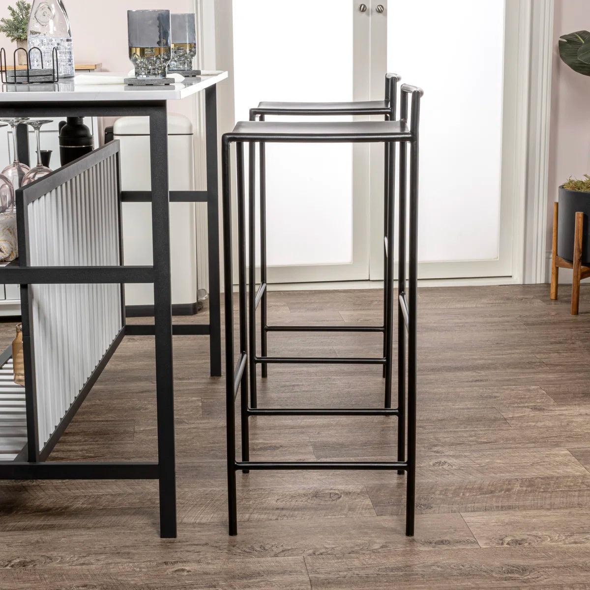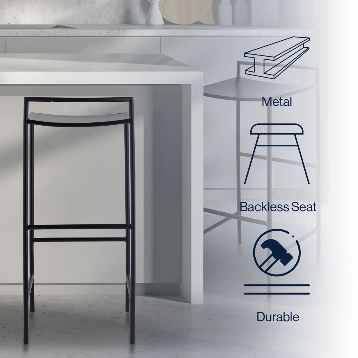 - Made from durable metal with an integrated footrest, this stool is a sturdy yet stylish addition to any home
