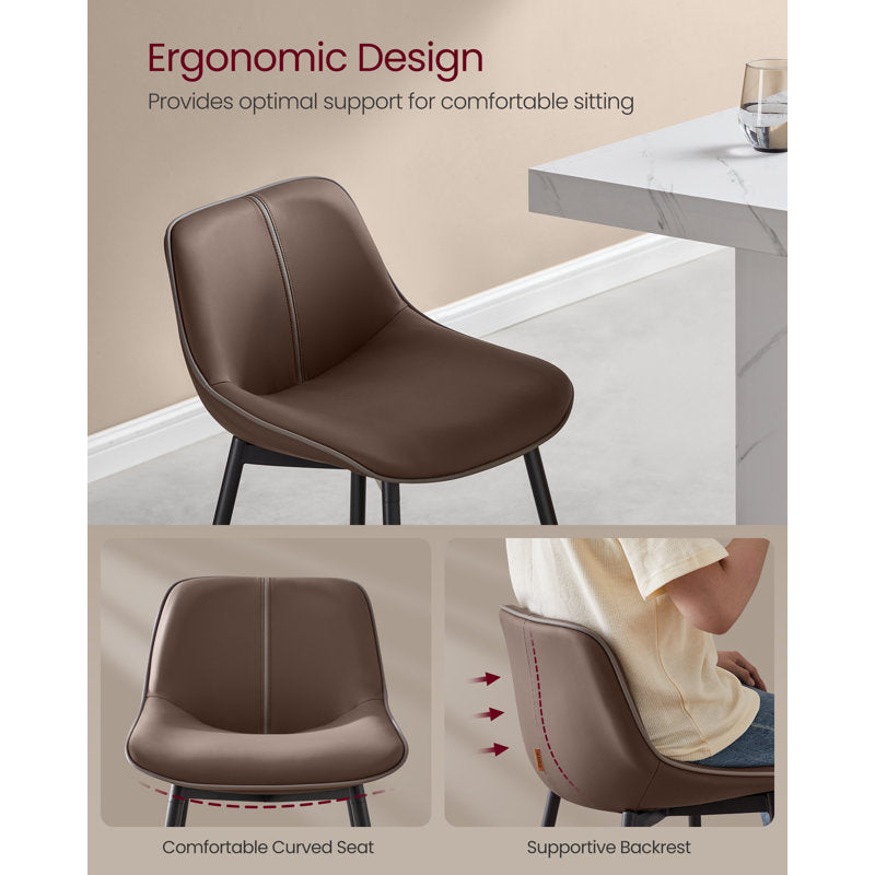 Offered as a two-piece set, this stool features a bold silhouette reminiscent of Mid-Century style. It boasts a sleek steel frame with a matte finish, while the chrome surface of the footrest is exposed for added shine. The bucket seat is upholstered in faux leather with dynamic stitching and is generously padded with foam for perfect support when you're enjoying a drink with a friend. Each stool in this set can support up to 265 lbs.