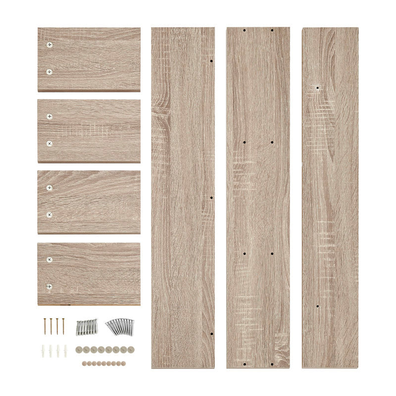 Make the most of your wall space with this hanging cubby shelf and eliminate clutter in a snap. It's crafted from engineered wood with a finish that complements styles from traditional to rustic. Three compartments are provided for small books and knick-knacks, while an open shelf at the top is ideal for picture frames and decorative items. There's also a back panel for a finishing touch. Measuring 15.75" high and 31.5" wide, you can display your treasured possessions without overwhelming your space. Mounting hardware is included; just be sure to have a hammer and screwdriver handy for easy installation.