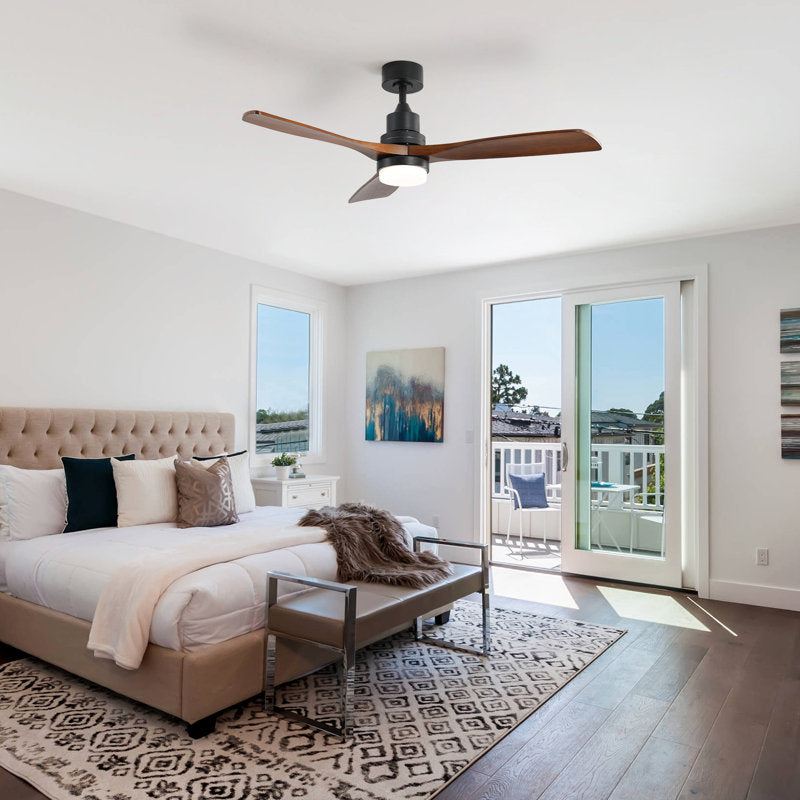 This 52-inch ceiling fan is both practical and stylish, enhancing any interior living space. Combining lighting and a fan in one, this fan features bidirectional rotation to meet your various needs year-round. The remote control makes it easy to operate the ceiling fan. The ultra-quiet motor can be adjusted to six speeds without causing excessive noise to disturb your family. The integrated LED light and wooden blades perfectly embody the industrial and retro theme. Let this modern 3-blade ceiling fan bring you ultimate comfort and illumination.